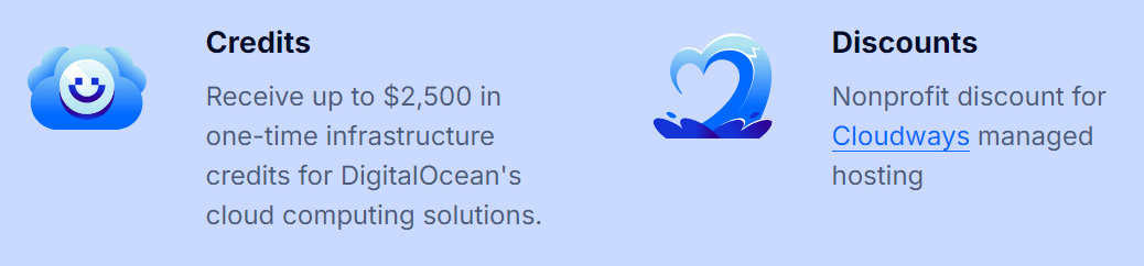 DigitalOcean provides cloud hosting services for more complex websites and applications. It can help nonprofit organizations by offering affordable and scalable cloud hosting solutions, allowing them to manage their websites, applications, and data efficiently without incurring high costs.